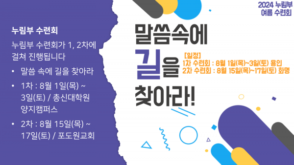 누림부 수련회가 1,2차에 걸쳐 진행됩니다.