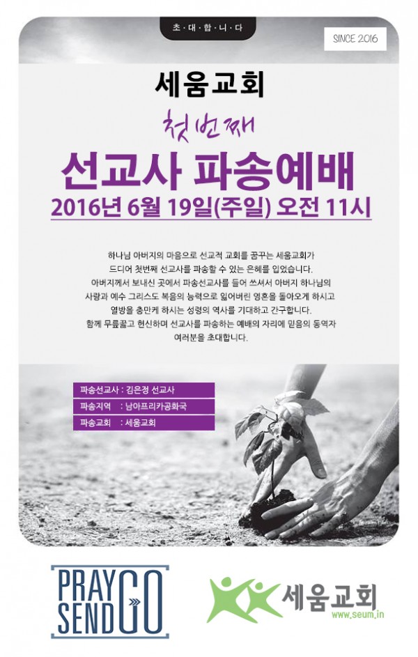 오는 주일(19일)에 선교사 파송예배가 있습니다.