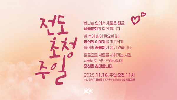 믿음으로 서로를 세워가는 시간, 세움교회 전도초청주일에 당신을 초대합니다.